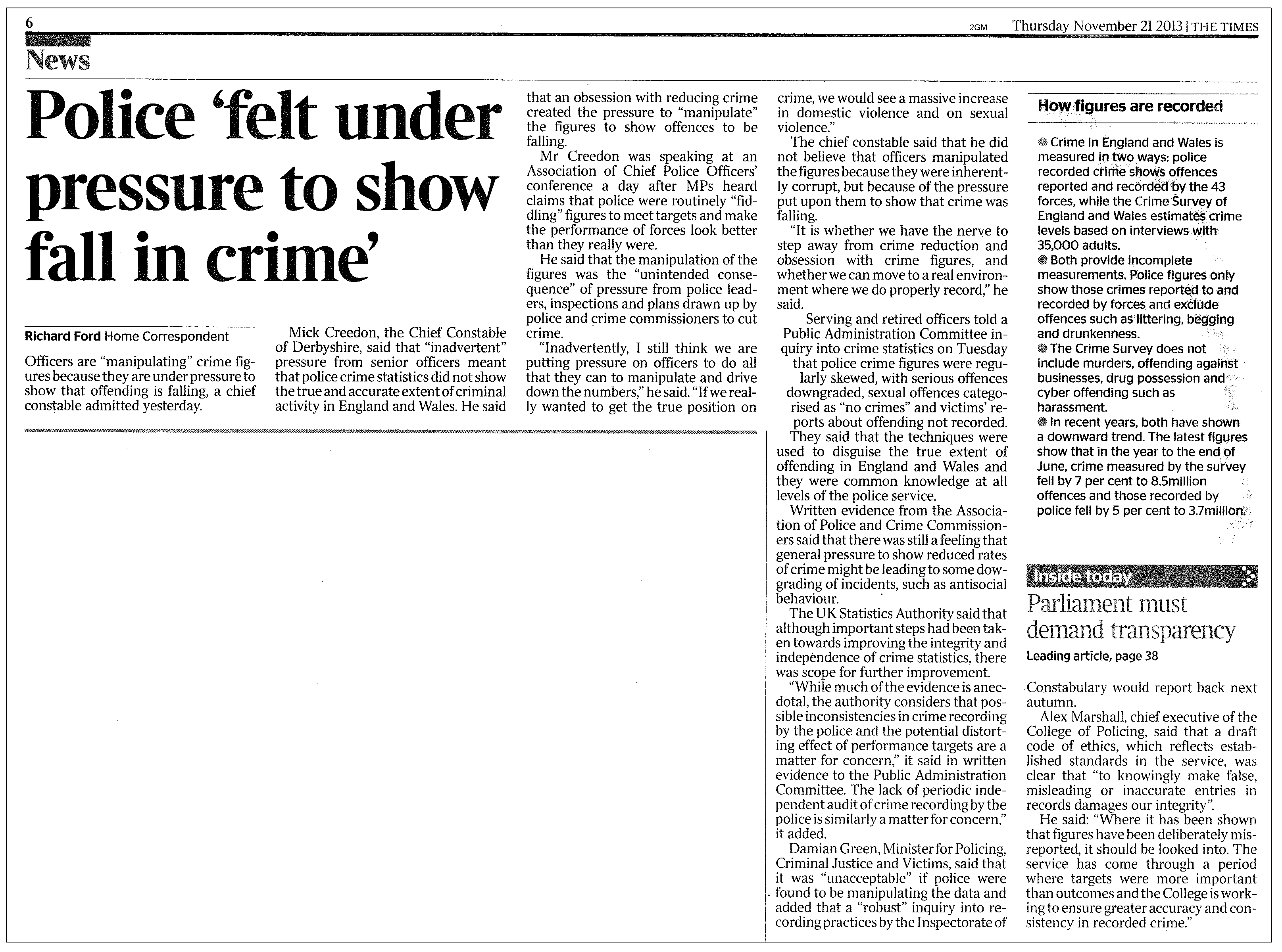 HoC PASC Crime Stats - Tue 19/11/13 - Evidence submitted: written & oral (